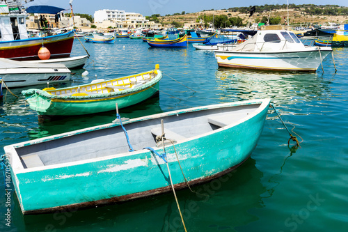 Obraz premium Mediterranean traditional colorful boats in Malta