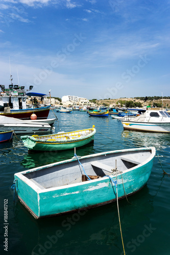 Obraz premium Mediterranean traditional colorful boats in Malta