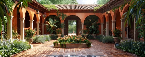 Obraz premium Mediterranean villa with a tiled courtyard.