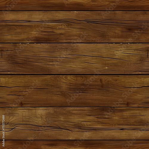 © lucky pics, Fototapeta premium Medium brown wood background. Seamless wooden planks board texture. Neural network generated image. Not based on any actual scene or pattern.