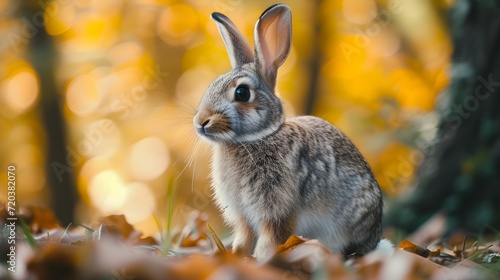 © Alice a., Fototapeta premium Medium close up shot of rabbit in nature blur background in forest. Generative AI