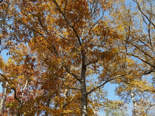 Fototapeta premium Medium close upward shot of trees with all its leaves in full autumn colors
