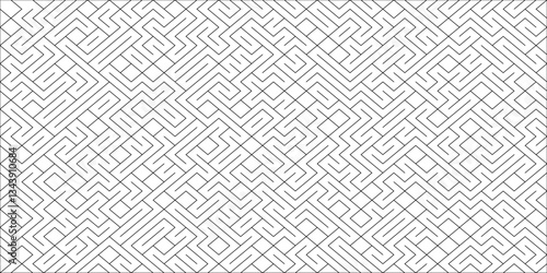 © Sonia, Fototapeta premium Medium Rectangular Maze Puzzle Game with a solution. Line maze game. Medium complexity. Rectangle labyrinth with entry and exit.