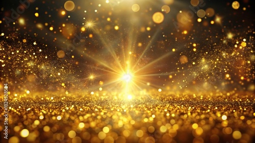 © suchetpong, Naklejka premium Medium shot abstract background of flickering gold particles and light flare