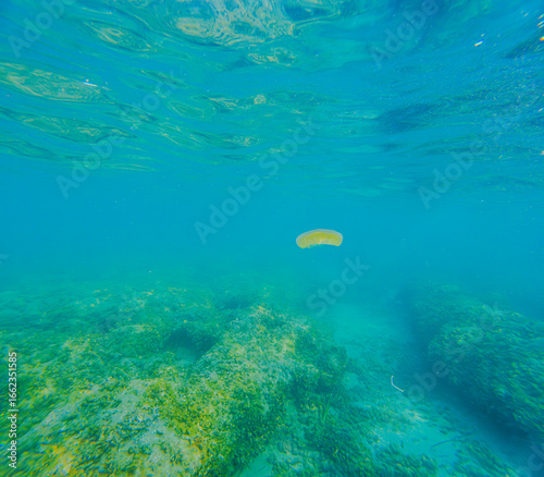 Naklejka premium Medusa de huevo frito en la playa de la renegá