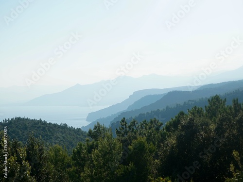 © moritz, Fototapeta premium Meer mit Bergen