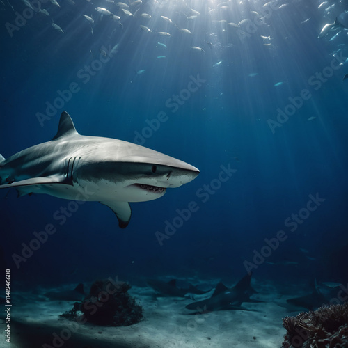 © movix, Fototapeta premium Meeresbewohner - Gefährlicher Hai im unendlichen Blau