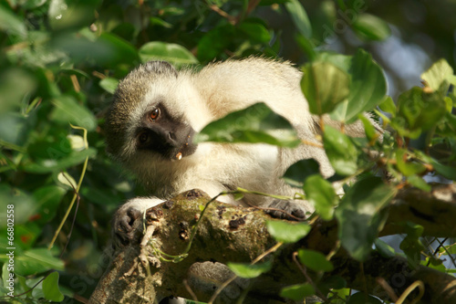 © Nadine Haase, Naklejka premium Meerkatze mit gebrochenem Zahn