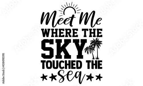 Naklejka premium Meet me where the sky touched the sea- summer t shirts design, Hand drawn lettering phrase, Calligraphy t shirt design, Isolated on white background, svg Files for Cutting Cricut and Silhouette, EPS 1
