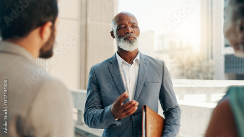 Fototapeta premium Meeting, mentor and teamwork with business man in city for real estate...