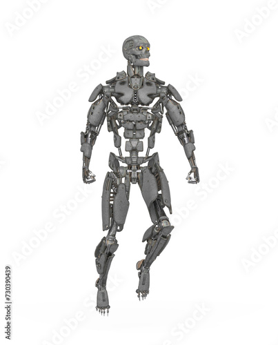 © DM7, Fototapeta premium mega cyborg is floating and ready for action in white background
