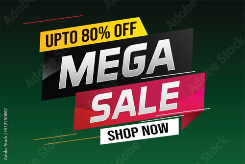 © Flow, Fototapeta premium mega sale word concept vector illustration with lines and 3d style, landing page, template, ui, web, mobile app, poster, banner, flyer, background, gift card, coupon, label, wallpaper
