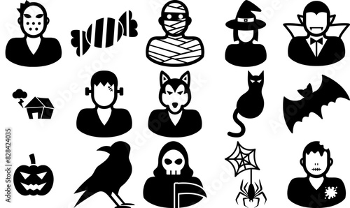 Naklejka premium Mega Set Of Vector Halloween Solid Icons Icons Web Header Banner Design...