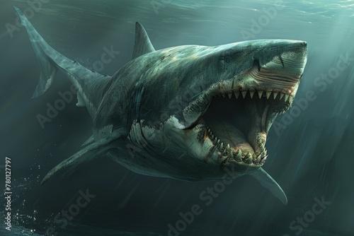 © Deivison, Naklejka premium Megalodon under the sea, marine life concept.