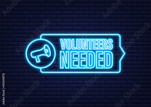 Obraz premium Megaphone label with volunteers needed. Megaphone banner. Neon icon. Web...