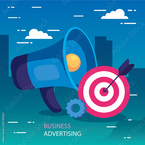 Fototapeta premium Megaphone target and gear design, Amplifer speaker bullhorn announce speech message communication and sound theme Vector illustration