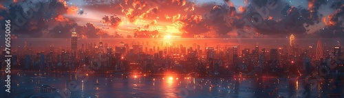 © Phawika, Fototapeta premium Megastructure city, time slipstream effect, twilight, eye-level, hyper-realistic digital art