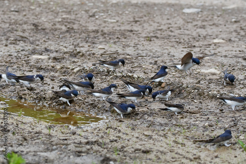 Fototapeta premium Mehlschwalben mit Nistmaterial