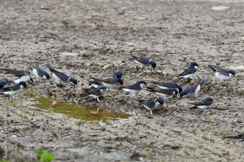 © Karin Jähne, Obraz premium Mehlschwalben mit Nistmaterial
