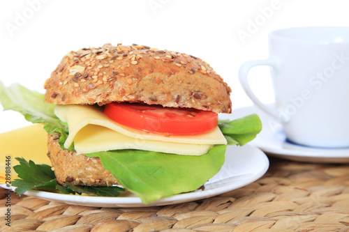 © Kaesler Media, Obraz premium Mehrkornbrötchen mit Käse.