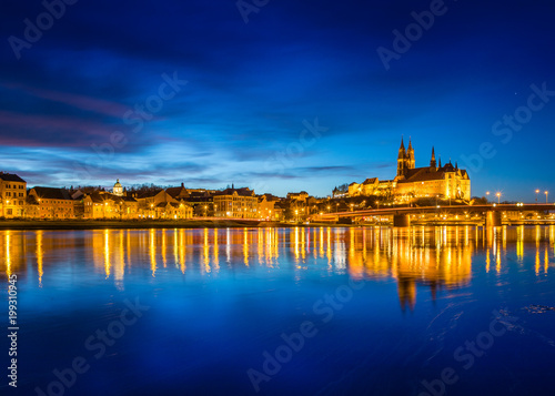 Fototapeta premium Meißen an der Elbe zur blauen Stunde