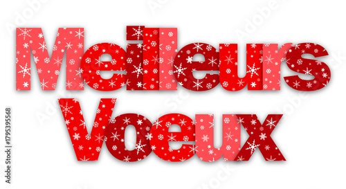 © Web Buttons Inc, Fototapeta premium MEILLEURS VOEUX (HAPPY NEW YEAR in French) red typography banner with snowflakes on transparent background