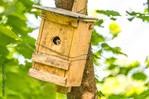 Naklejka premium Meisen mit Nachwuchs im Nistkasten