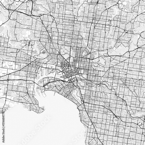 © Knut Hebstreit, Fototapeta premium Melbourne Area Map with Labels and Neighborhoods - One color, minimalistic design
