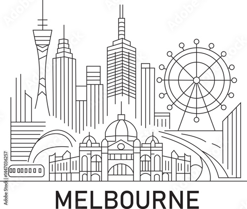 © Felicia, Fototapeta premium Melbourne City Line Draw Simple Minimalist