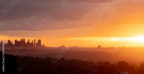 © Wabi, Fototapeta premium Melbourne city skyline at sunset