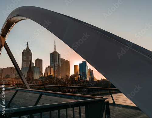 © Christopher Ingham, Fototapeta premium Melbourne cityscape framed by the Evan Walker Pedestrian