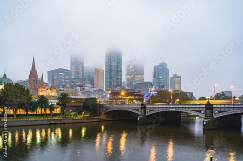 Obraz premium Melbourne cityscape on foggy morning