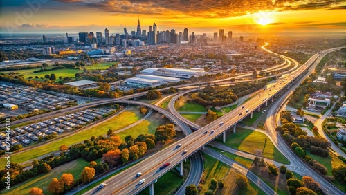 Obraz premium Melbourne M2 Freeway Aerial View - Elevated Highway Perspective, Australian...