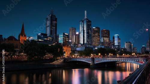 Fototapeta premium Melbourne skyline reflecting on yarra river at dusk