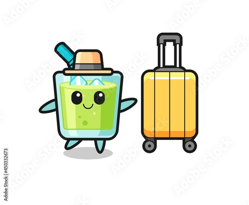 Obraz premium melon juice cartoon illustration with luggage on vacation