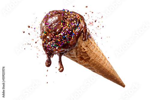 Fototapeta premium Melted chocolate ice cream cone explosion