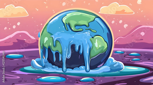 Fototapeta premium Melting Earth, climate change, global warming, environmental disaster, illustration, for educational purposes