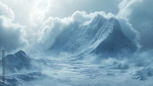 © Aisha, Fototapeta premium Melting glaciers at the North Pole with exposed Arctic water and thick cloud cover