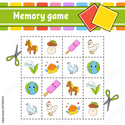Fototapeta premium Memory game for kids. Education developing worksheet. Activity page with...