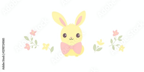 © Rawpixel.com, Fototapeta premium Memphis ribbon rabbit butterfly garland illustration floral colors.