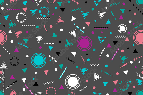 Obraz premium Memphis style seamless pattern with geometric shapes and patterns. Vector.