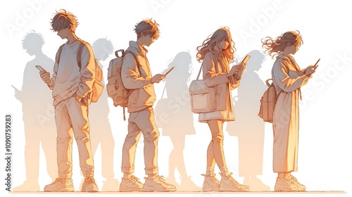 © Hiro, Fototapeta premium Men and women are busy with their respective cell phones