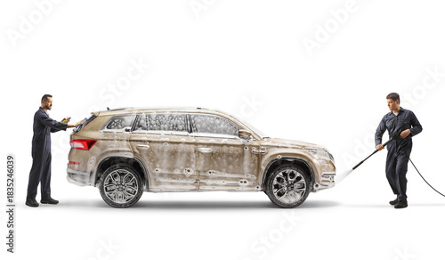 © Ljupco Smokovski, Naklejka premium Men at a car wash cleaning a vehicle