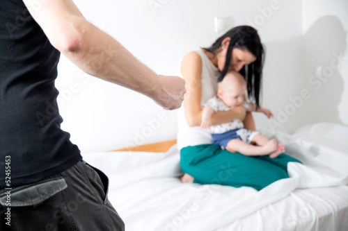 © Mediteraneo, Obraz premium Men beating his wife and child at home