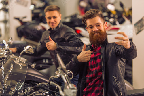 Fototapeta premium Men in motorbike salon