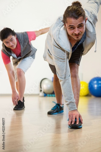 Naklejka premium Men performing stretching exercise