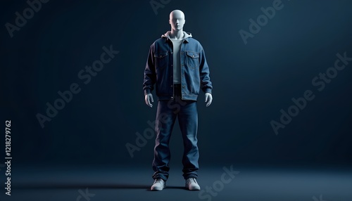 Fototapeta premium Men's Denim Jacket and Jeans Outfit Studio Shot