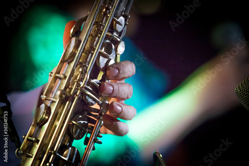 © Daria, Fototapeta premium Men's hand holging brass music instrument
