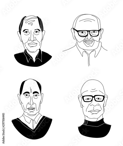 © svsunny, Fototapeta premium Men's head portraits grunge line drawing set doodle poster
