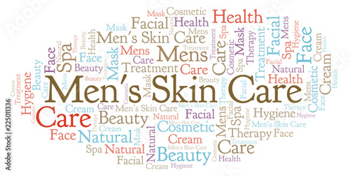 © sharafmaksumov, Fototapeta premium Men's Skin Care word cloud.